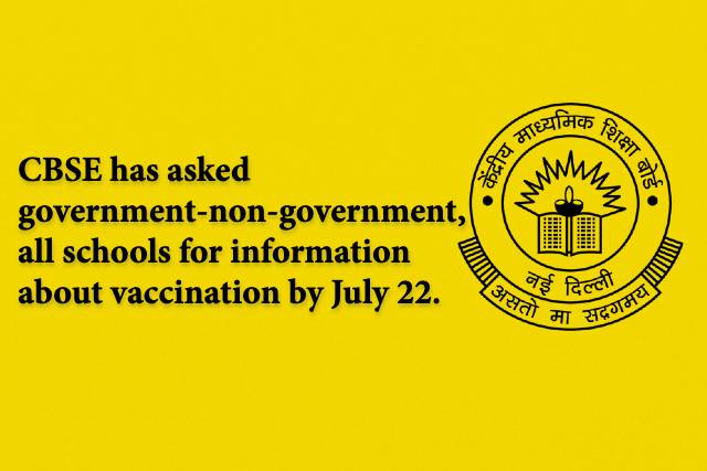 CBSE has asked government-non-government, all schools for information about vaccination by July 22.