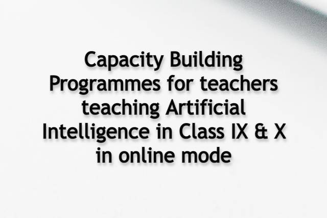 Capacity Building Webinar for class IX Artificial Intelligence curriculum organized by CBSE – IntelThese programmes are meant for the teachers of the schools who have introduced Artificial Intelligence as a Skill subject in classes IX & X in their schools from session 2021-22 onwards.
