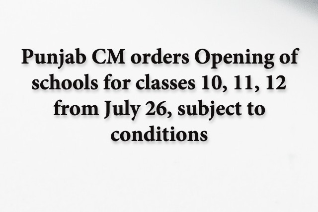 Big news is coming out for the students of Punjab, all the schools in Punjab, which have been closed for almost 4 months, will open from July 26 from class 10th to 12th. Chief Minister Capt Amarinder Singh has decided in this regard today.